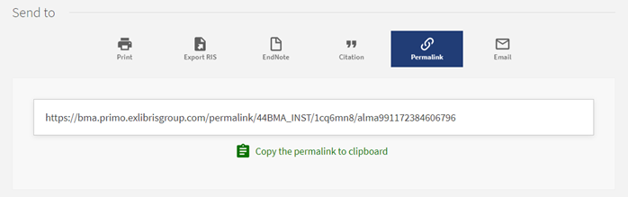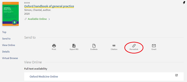 The Permalink button for an item is the quickest and easiest way to let us know exactly which electronic resource you are contacting us about: