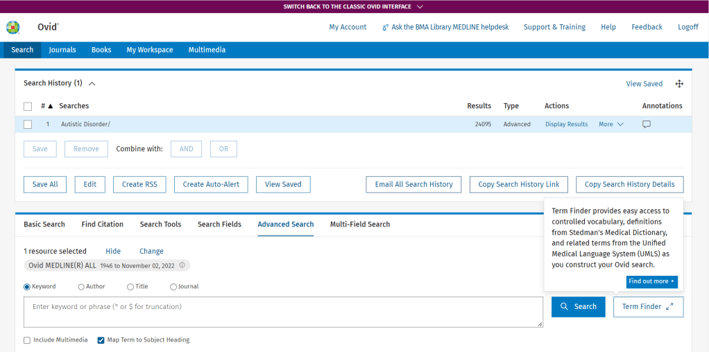 Explore the new look today, you can switch between the new and classic version while you become comfortable with the new design. Simply click on “Switch back to the classic Ovid interface” at the top of the screen to select. We’re sure that the new version will quickly become your favourite.