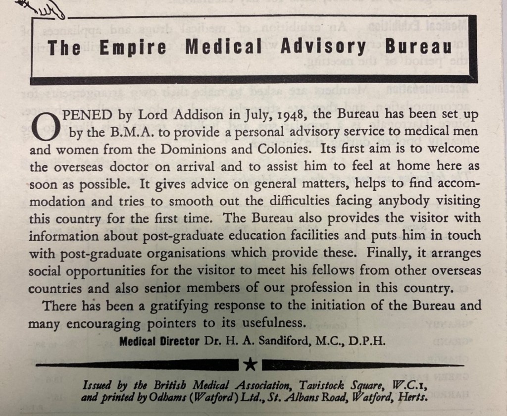 The BMA has always looked at ways to support doctors into the profession with the Empire Medical Advisory Bureau opening in July 1948.
