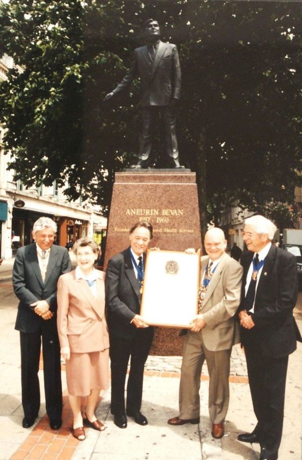 The above picture, taken at the BMA’s 1998 Annual Representative Meeting (ARM), held in Cardiff, shows the presentation of a plaque to commemorate the 50th anniversary of the foundation of the NHS. The presentation was made in front of a statue of Aneurin Bevan, who spearheaded the creation of the NHS in his role as the UK Government’s Secretary of State for Health.